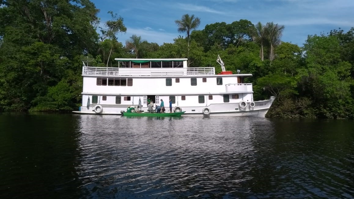 We leave by motorized canoe at 05:30 am, we want to see the birds & monkeys at dawn in the forest. We are going to explore for approximately two hours, going through the creeks and flooded Igapó. Breakfast at 08:30 am, morning for swimming with the dolphins (an instructive play). Lunch at 12:00 pm (noon), in the afternoon we are going to explore by canoeing to search for a magnificent primate the Golden-backed Uacari – Cacajao melanocephalus. Among Uacaris monkeys, the supposedly nearest to archetypic (prototypic) ancestral form for the genus represented by the extant Black-headed Uacaris (Van Roosmalen et al., 2000). Different primate ‘species migrate laterally during the aquatic phase to search for fruits and nuts from the low areas of the Rio Negro and can be seen during feeding.  Dinner and overnight in the boat!